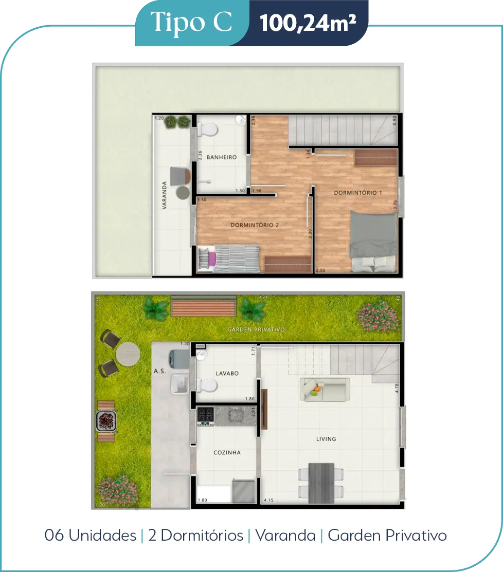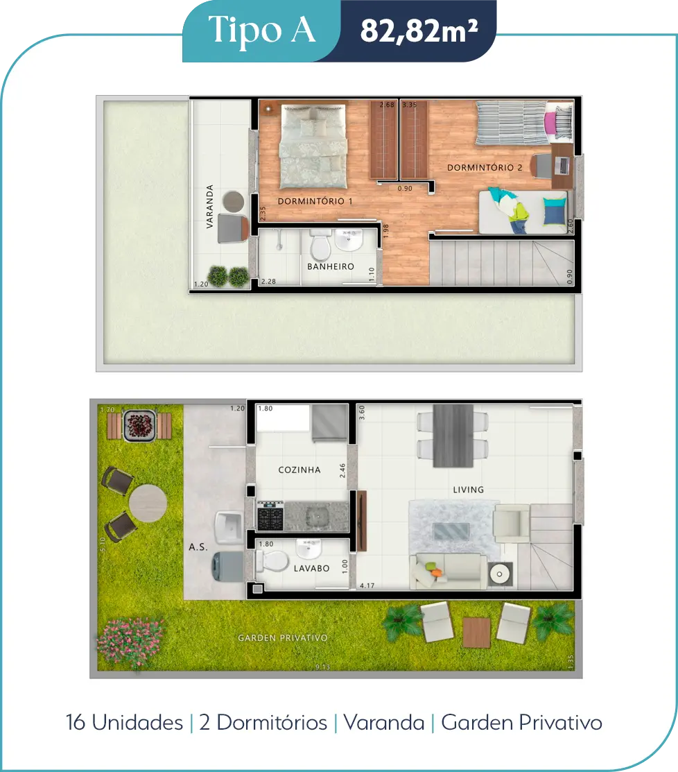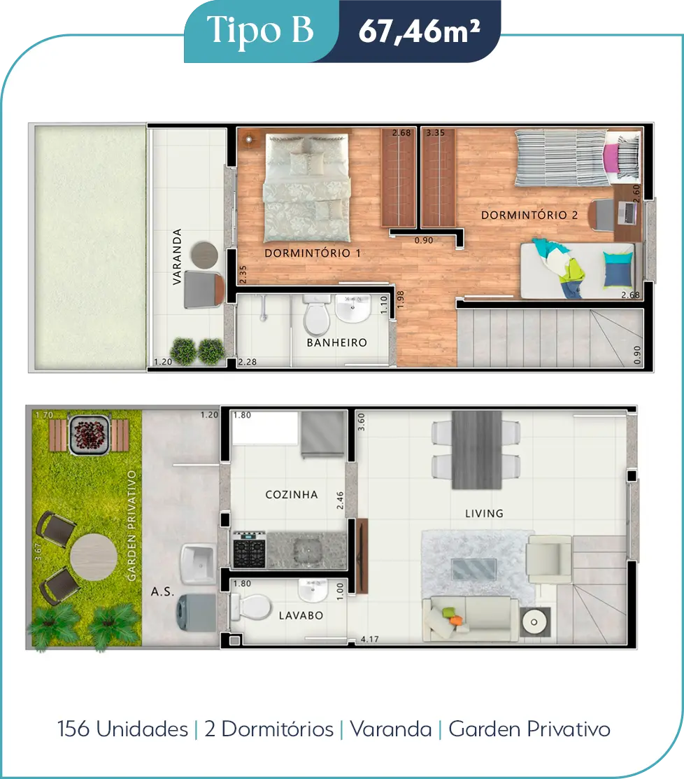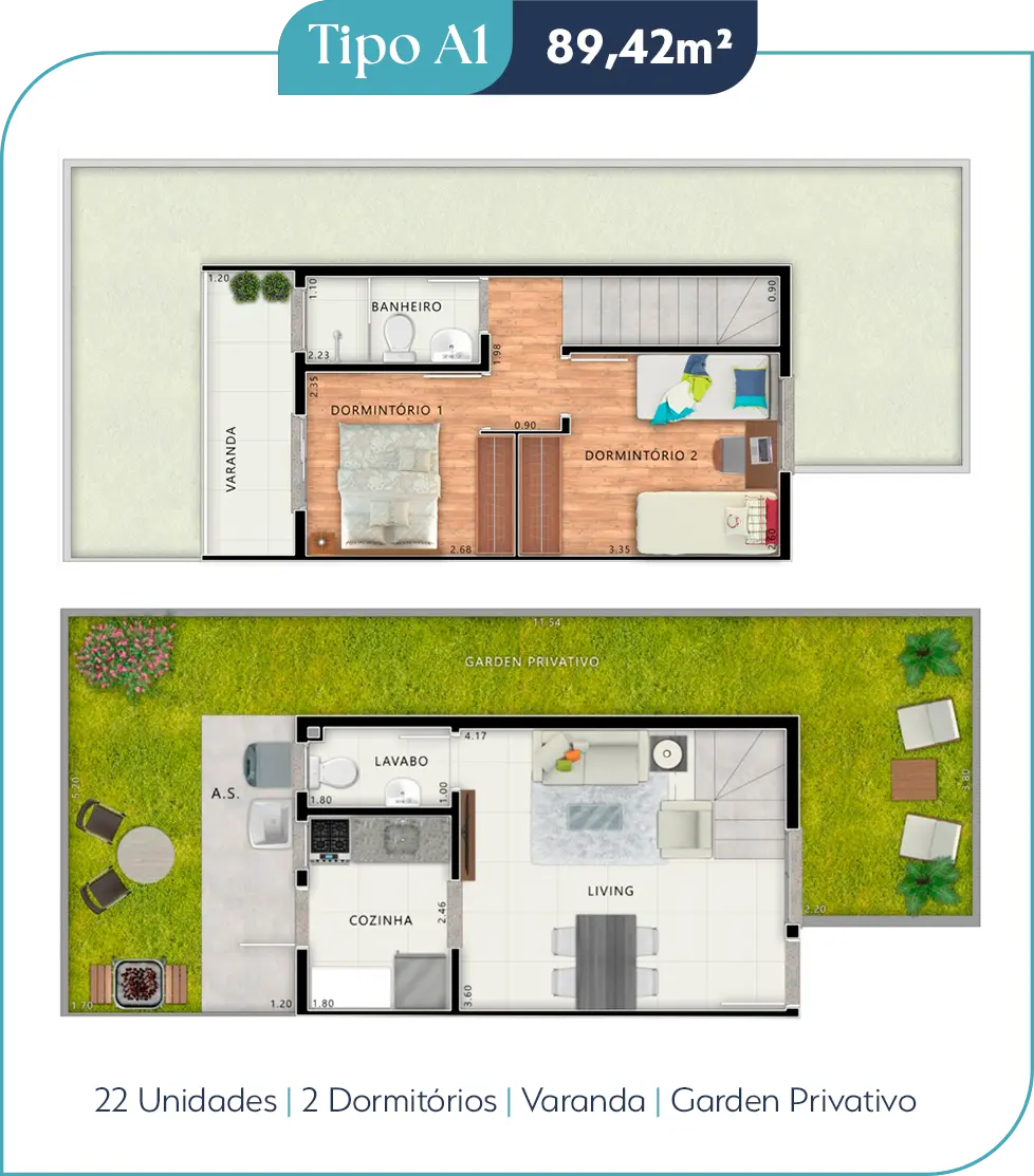 Sobrados de 67,46m² a 100,24m² que valorizam cada detalhe da sua rotina.